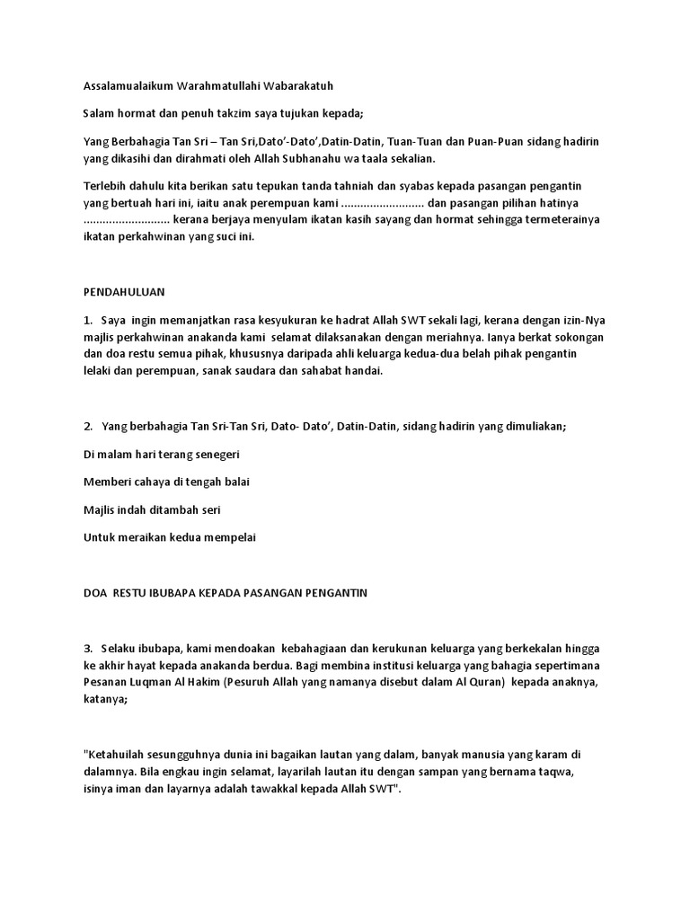 Teks Ucapan Bapa Pengantin 2017 Pdf